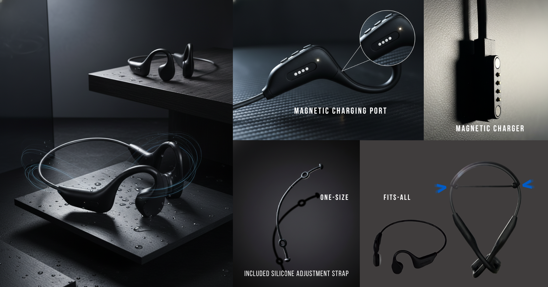 Discover the technology behind VYBRZ PULSE PRO. From a flexible one-size-fits-all titanium frame to a fully sealed magnetic charging system, every detail is built for athletes who demand comfort, durability and total freedom of movement.